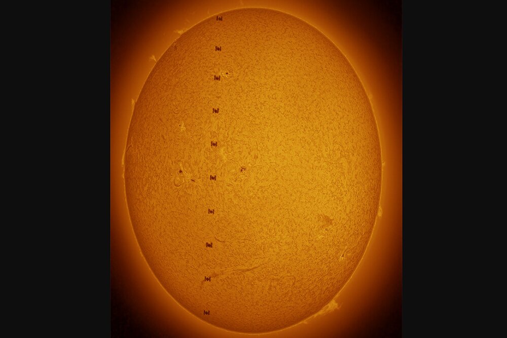 NASA’s Day Photo shows a set of images from the International Space Station to the Sun.