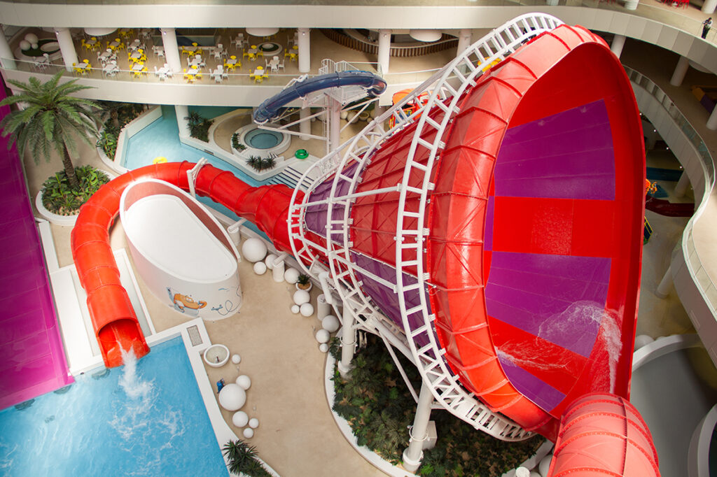 Ready for a real free fall? Aqualoopthe tallest and most exciting slide ever Indoor water parks in the worldIt brings you an unforgettable experience of being released at a speed of 15 meters per second and 360 degrees rotation. Imagine being released from the trapdoor in a moment and experiencing an exciting fall.