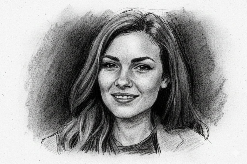 Convert the portrait photo into a hand-drawn charcoal sketch.Emphasize facial contours, shadows, and expressive lines.Monochrome color palette with deep blacks and soft gray tones.Rough paper texture and natural hand-drawn imperfections.Dramatic and artistic portrait style with minimal background.Prompt to convert a portrait photo into a modern impressionist painting