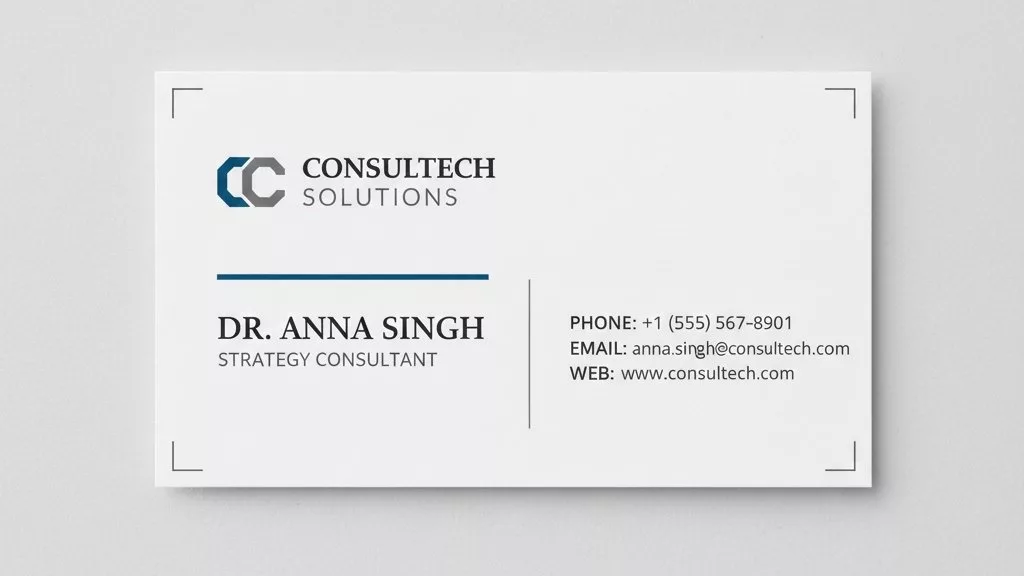 Create a corporate business card suitable for startups and companies.Consistent with corporate identity and brand guidelines.Professional layout with modern typography.Include logo, company name, position, and contact details.CMYK, 300dpi, print-ready with bleed.Technical principles and printing standards for better output than business card prompts