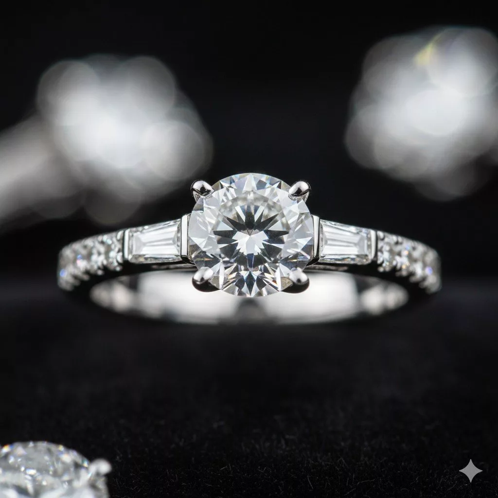 A macro jewelry product photography showcasing fine details of rings or necklaces, soft studio lighting, controlled reflections, shallow depth of field, extreme sharp focus, metallic and gemstone textures clearly visible, luxury commercial style, hyper-realistic, 8K resolutionIndustrial photography prompt with soft studio lighting