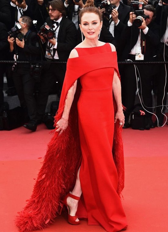 By choosing the color red several times, Julianne Moore reminded her audience that she never gets tired of red. The designer of this dress was Bottega Veneta.