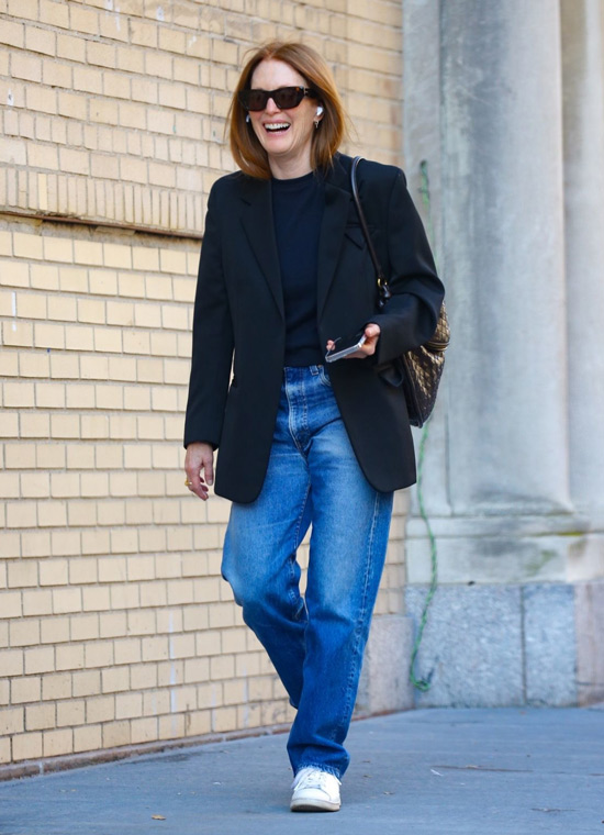 When we go through photos of Julianne Moore’s street style, we notice that she wears jeans 90% of the time. She styles the jeans with any outfit she likes. Whether it’s a simple blouse, coat or top. These choices depend on the situation and of course the desired season.
