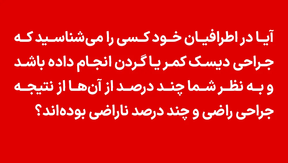 Back and neck disc surgeries are expensive, especially with advanced technologies such as lasers. According to available sources, the cost of lumbar disc surgery with laser in Tehran varies between 20 and 50 million tomans. These costs include the surgeon’s fee, hospital fees, equipment used, and post-operative care.