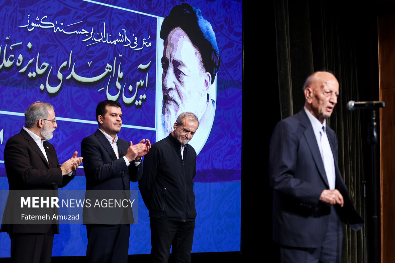 The ceremony was attended by President Massoud Presidents, Hossein Afshin, President of the National Elite Foundation, Hosseini Samai Sarraf, Minister of Science, Research and Technology, Haddad Adel, Head of the Academy of Persian Language and Literature.