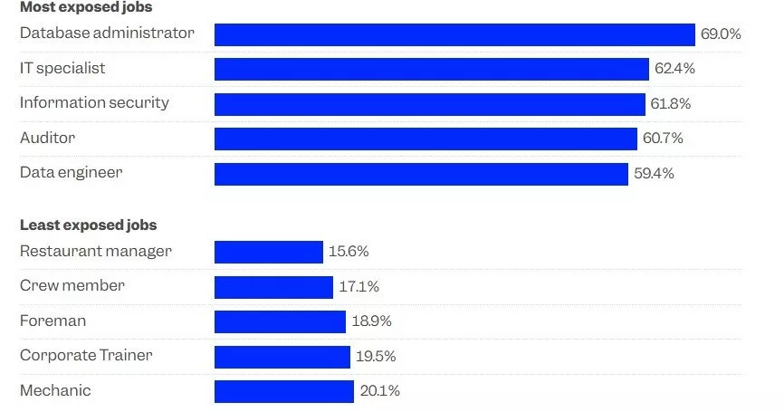 Exactly which jobs have the most impact on artificial intelligence? According to experts, jobs that manage technical functions, such as database managers, information technology professionals, information security and data engineers, come into this category. In contrast, iodine jobs such as restaurant managers, workmen and mechanics have the least impact.