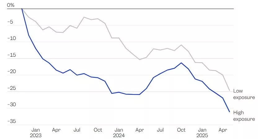 According to the researchers, 2022, when Openai released ChatGPT chats, was observed a overall decline in job opportunities. Of course, the stagnation of employment for jobs with the highest impact was more severe than jobs with the least impact (chart above). In short, jobs that artificial intelligence can do, faster than jobs outside of artificial intelligence disappear from employment ads.