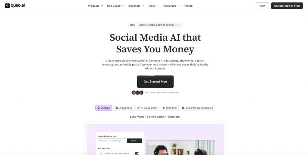 quso.ai focuses more on social media content creation. The reason for its inclusion in the list is its visual features and subtitle styling, which are very useful for vertical videos.