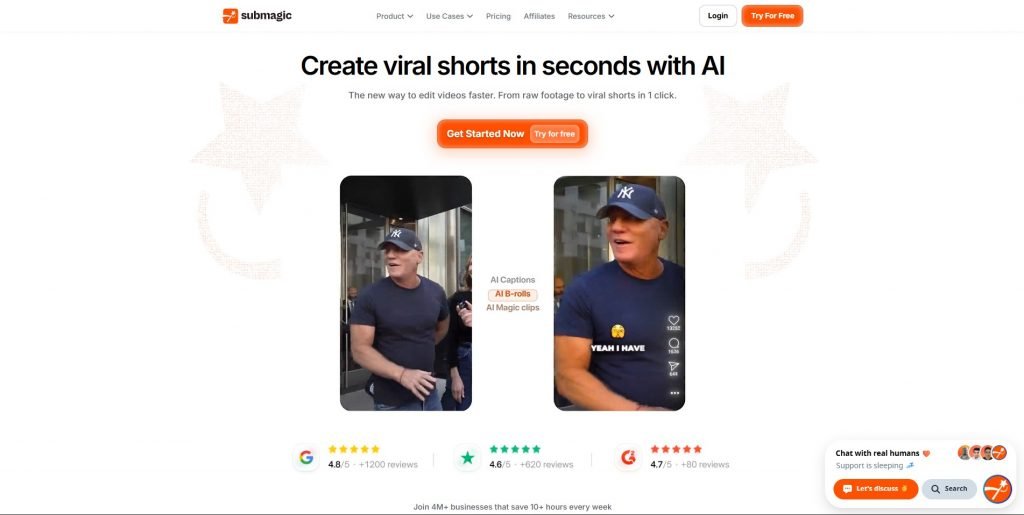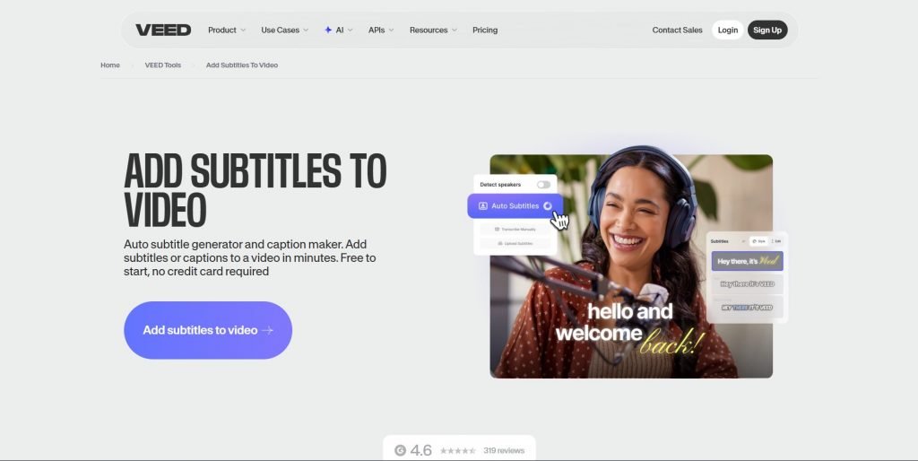 Submagic is designed for those who want subtitles to be not only readable, but also interactive. The ability to highlight words while speaking and the ready-made templates for short videos are the main reasons for choosing it on this list.