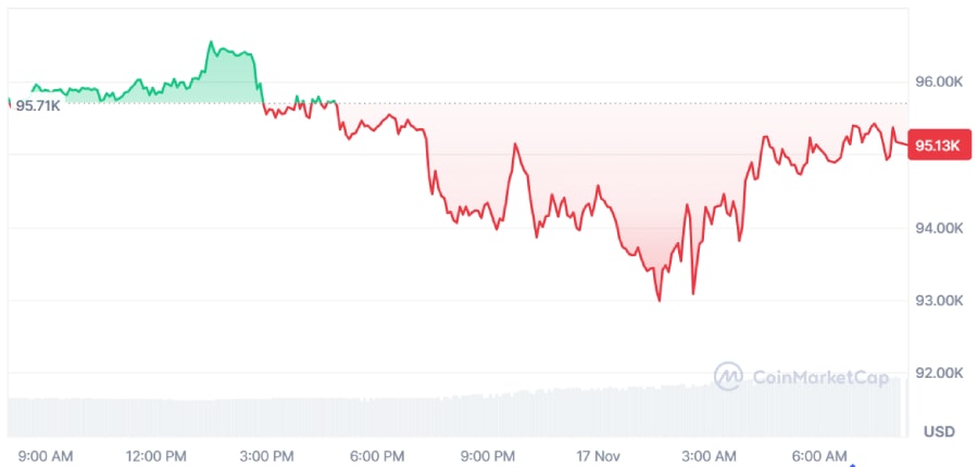 At the time of writing, Bitcoin has recovered some of its losses and is trading in the range of $95,000.