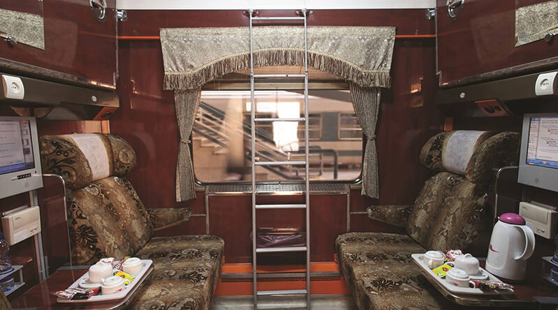 – 4-seater wagons: this train uses wagons with four-seater compartments, each wagon contains 11 compartments. Also, each wagon is equipped with a cabin for the attendants to rest.