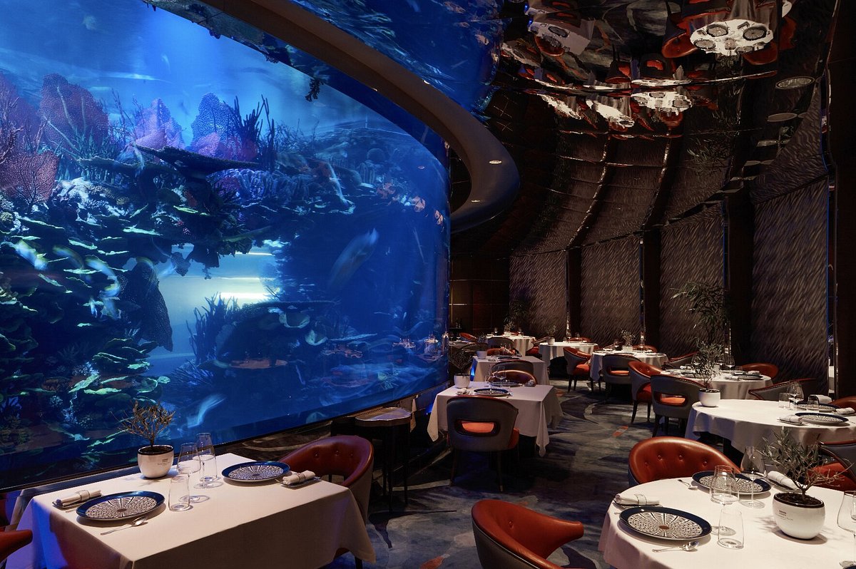 Al Mahara Restaurant is one of the most luxurious and amazing restaurants in Dubai, located in Jumeirah and in the heart of Burj Al Arab. This restaurant, managed by the famous British chef, Nathan O’Tlow, has become a center for seafood lovers. The manager of this restaurant has four other luxury restaurants in the UK. He offers a menu with an original and modern taste, the stars of which are dishes such as caviar and fresh oysters.
