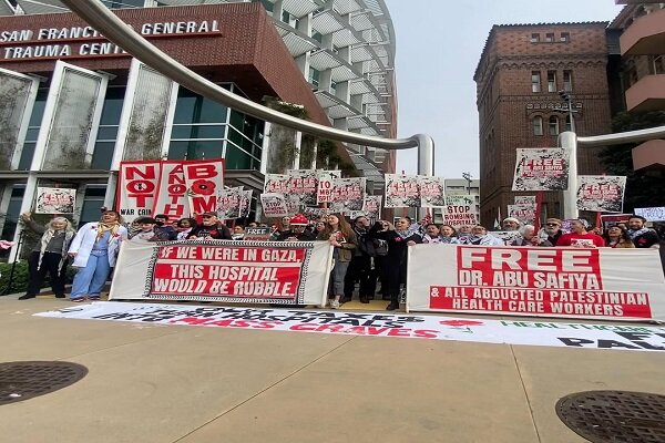 According to the news agency stamp Palestine Information Center, hundreds of human rights activists and supporters of Palestine in the city of San Francisco Opposite One of the hospitals of this city gathered and demanded the release of Dr. Hossam Abu Safiya» Director of Kamal Hospital aggression in Gaza, and ending the occupation of Palestine.