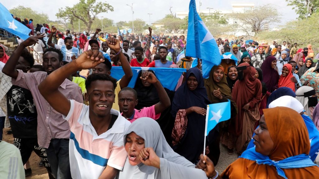 In a stadium in the capital, protesters raised the flags of Somalia and Palestine and chanted slogans against Israel’s decision, emphasizing the unity of the Somali nation.
